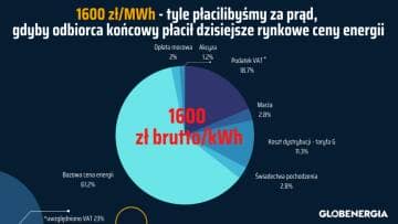 Bazowa cena energii stanowi nieco ponad 60% faktycznych kosztów energii elektrycznej, za którą musi zapłacić odbiorca energii elektrycznej. Do tych kosztów należy jeszcze doliczyć takie elementy jak opłata mocowa, akcyza, podatek 23% (VAT 0% obowiązuje tylko do 31 lipca 2022 r.), marża, koszty dystrybucyjne i świadectwa pochodzenia. Gdyby prezes URE zgodził się na podwyżkę, która uwzględniałaby tak duży wzrost kosztów produkcji energii, w taryfie G11 - podstawowej taryfie dla gospodarstw domowych - 1 MWh kosztowałaby ponad 1600 zł.